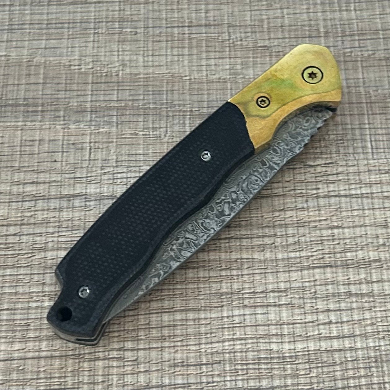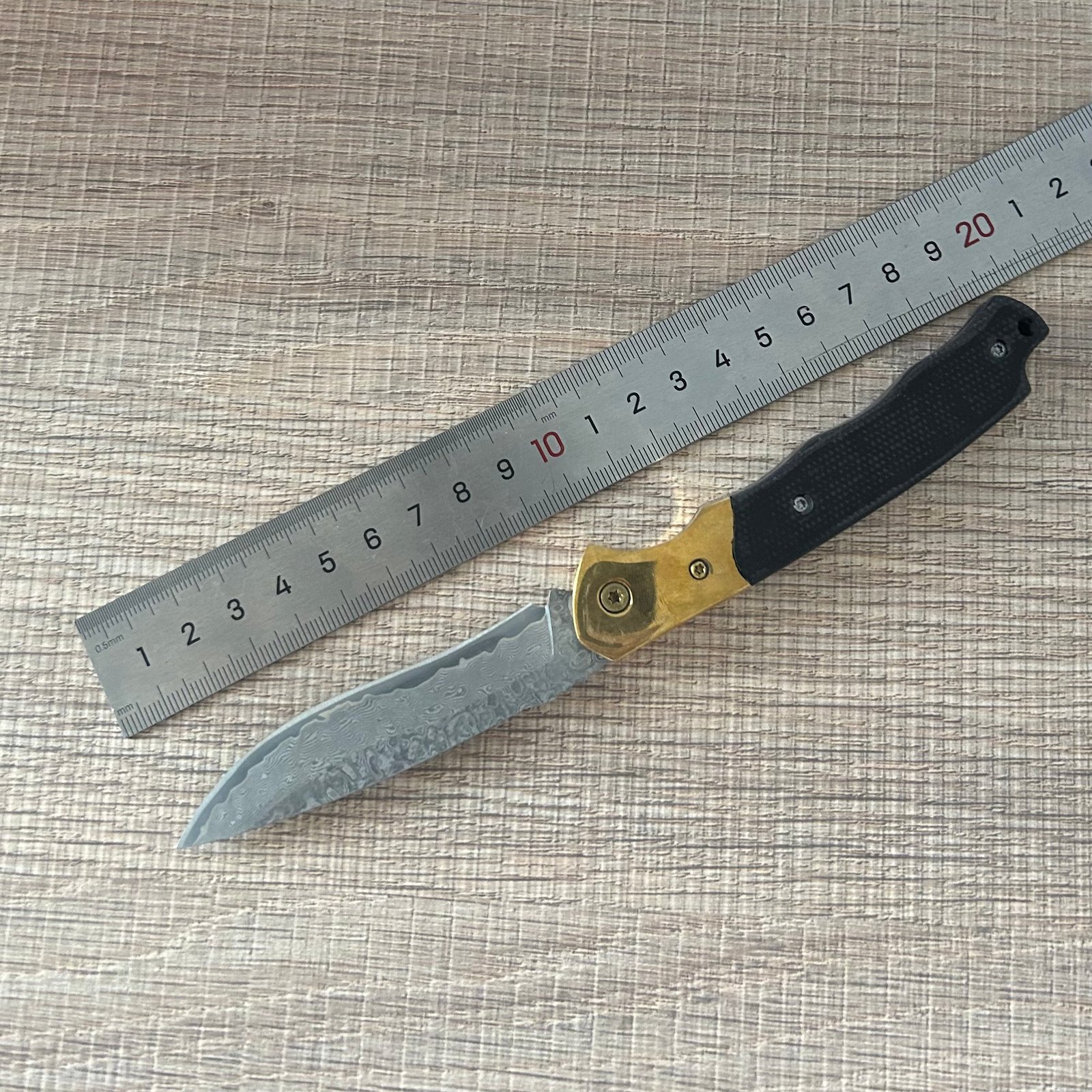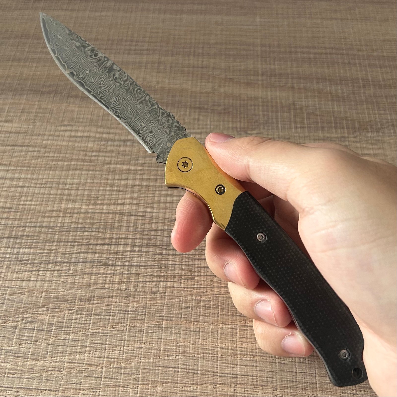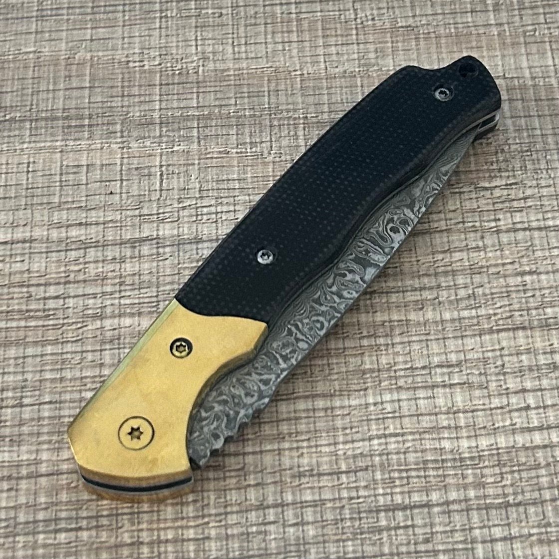 wholesale Damascus Folding Knife – Brass-Trim Handle Artisan EDC Tool